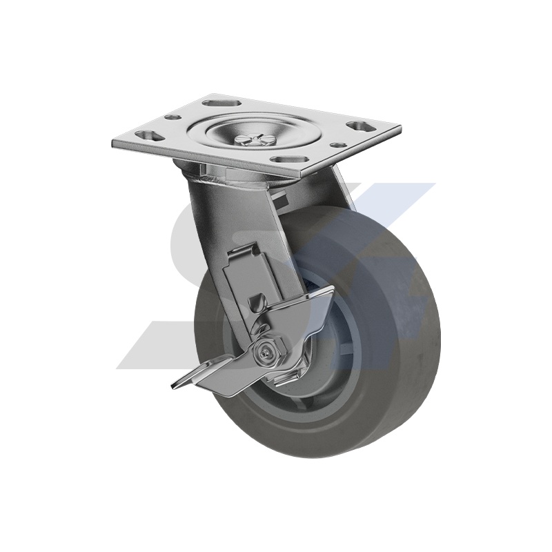 5 x 2" Zinc-Plated, Swivel Caster with Side Tread Lock Brake