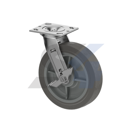 8 x 2" Zinc-Plated, Swivel Caster with Side Tread Lock Brake