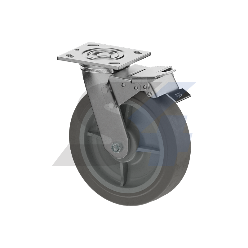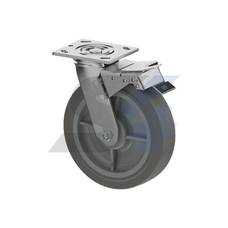8 x 2" Zinc-Plated, Swivel Caster with Total Lock Brake
