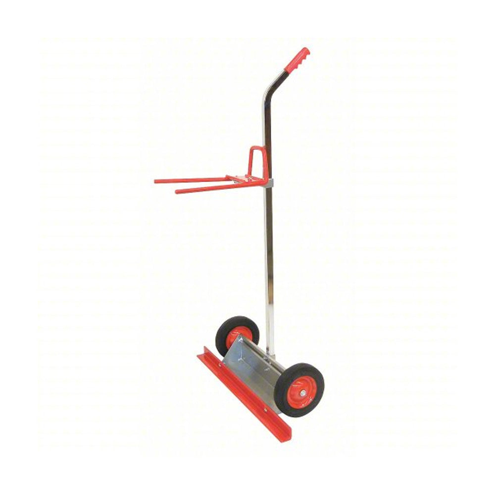 Designed with a steel frame and red powder-coat finish for durability, the cart features two 8" rubber wheels for smooth maneuverability. The adjustable lift fork accommodates both standard and high-top tables, while the double-sided handle ensures easy control when tilting the cart back like a hand truck. A single rail supports secure lifting and transport, and the cart comes fully assembled for immediate use.