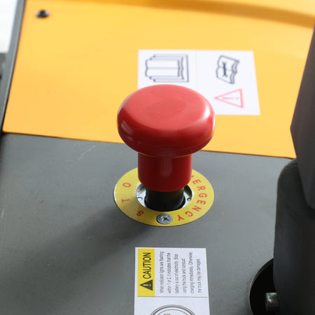 The unit includes polyurethane wheels for smooth maneuvering, a 180° steering arc for optimal control, and a built-in 110V charger for convenient charging. Safety features include warning lights, a buzzer for enhanced operational safety, and it is capable of 6 hours of service per charge.