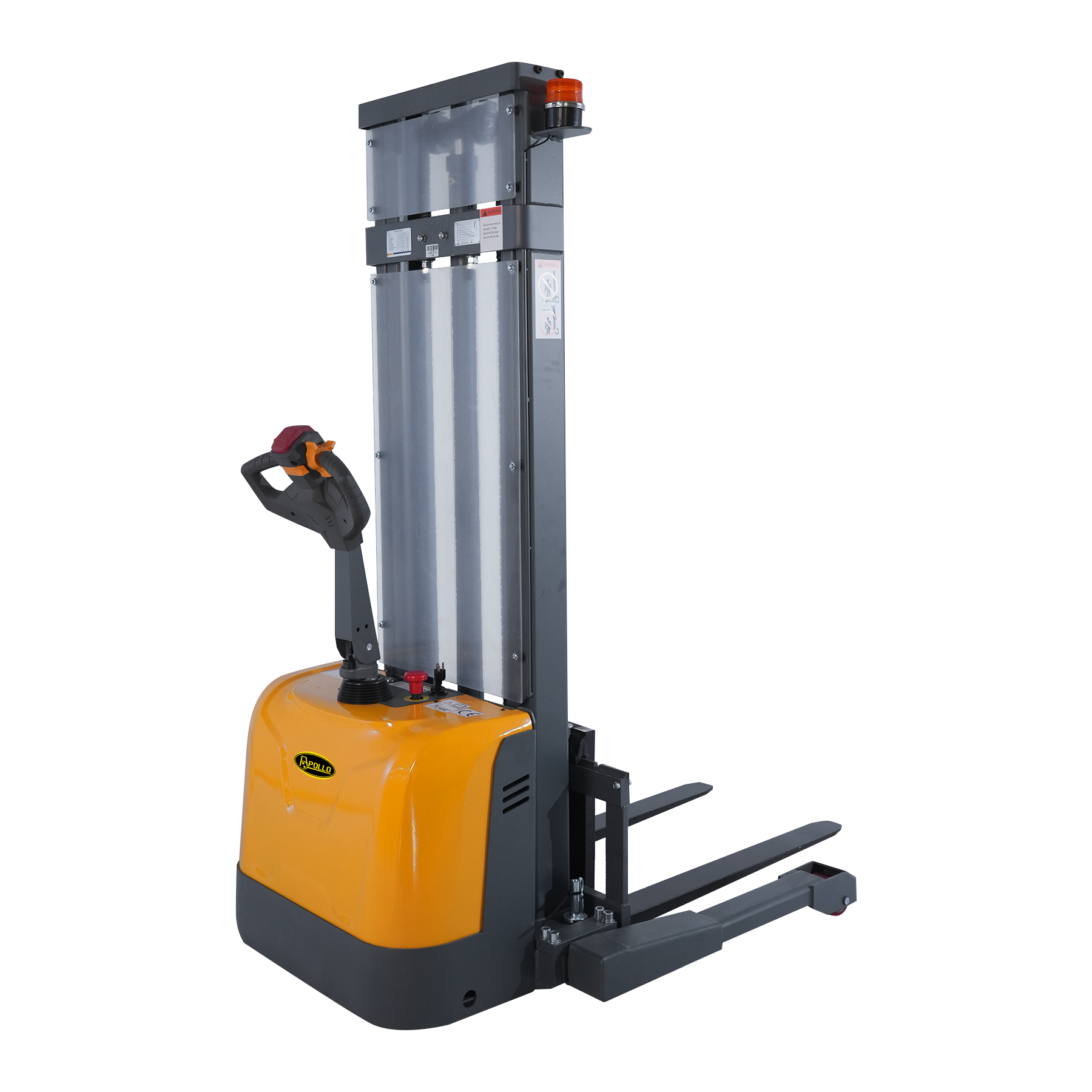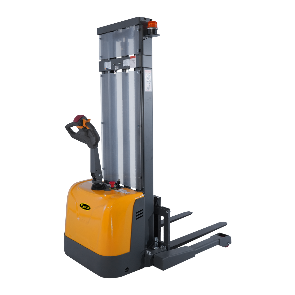 Experience superior handling and performance with our Full Electric Walkie Stacker, designed specifically for narrow sites. This stacker supports a robust 3300 lbs capacity and features straddle legs to accommodate various pallet sizes. Its compact design, including a 52.9" turning radius, ensures efficient operation even in tight spaces.