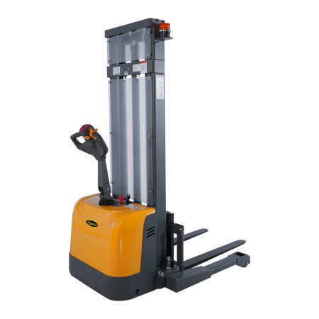 Powered by a 650-watt drive motor and a 2200-watt lift motor, it offers unmatched performance. The use of maintenance-free GEL batteries eliminates the hassle of regular upkeep, while the built-in display keeps you informed of working hours, battery levels, and alerts for low voltage. With an impressive 118" maximum lifting height and adjustable forks, this stacker meets a wide range of industrial needs.