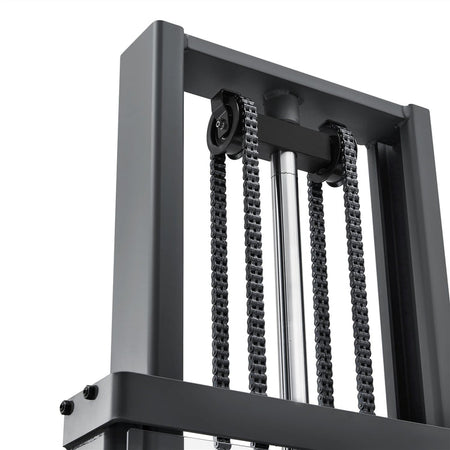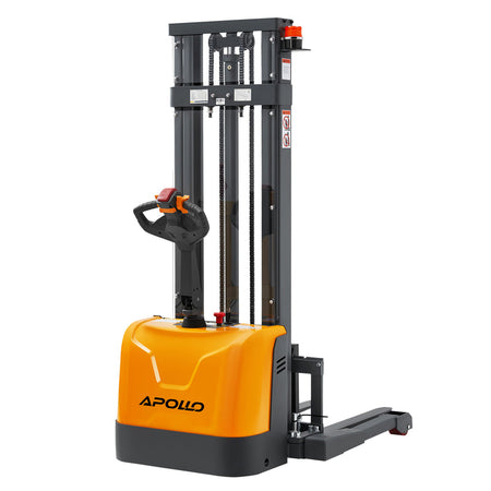The APOLLOLIFT A-3049 is a full electric straddle stacker designed to lift heavier loads to higher racks, making it ideal for modern warehouses and tight indoor environments. With a lifting capacity of 3300 lbs and a max lift height of 130", this unit is powered by a durable 24V/100AH GEL battery and built to handle daily industrial demands.