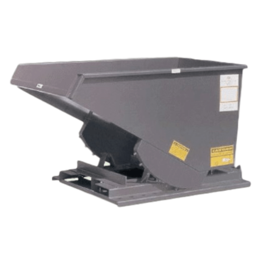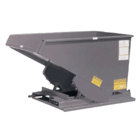 This 3-1/2 cubic yard watertight welded low profile steel hoper solves your bulk handling problems and increases productivity. Hoppers are designed for forklift handling, dump safely from any height and are precisely balanced to tip forward to empty contents and then return to its upright position. For wet or dry use. A positive locking latch prevents accidental dumping; 2' formed top lips increase rigidity and eliminate sharp edges. A safety chain secures the hopper to the handling vehicle.