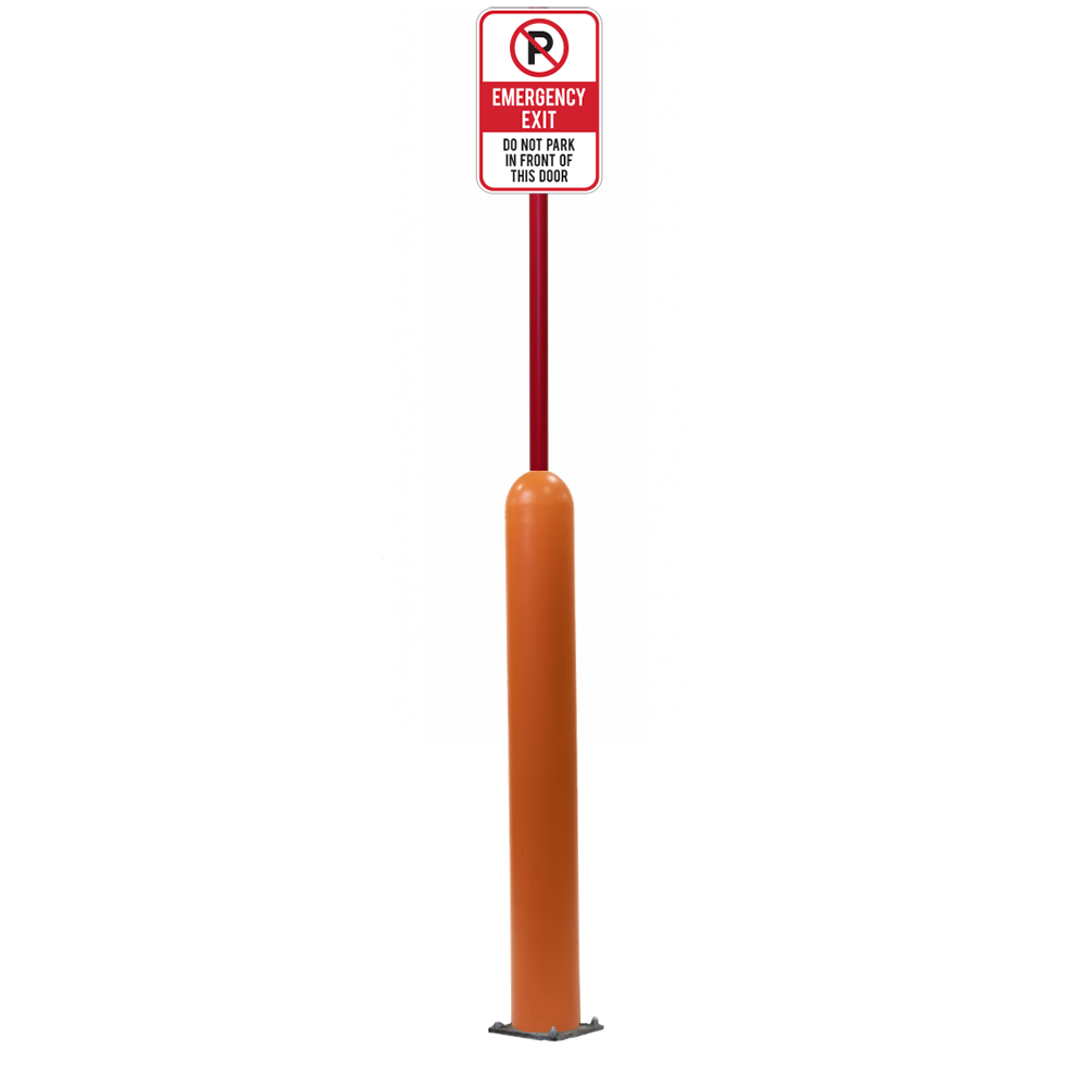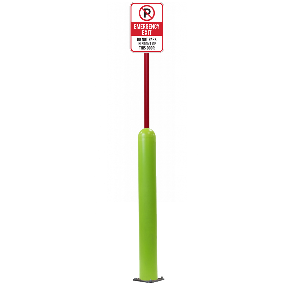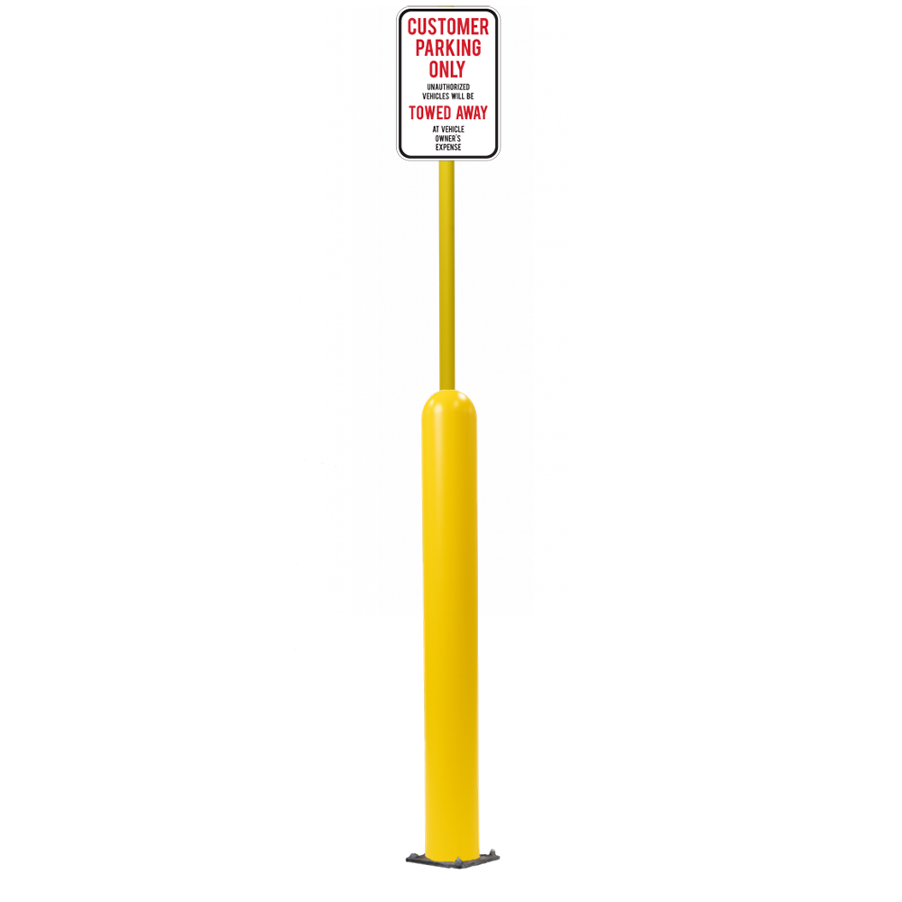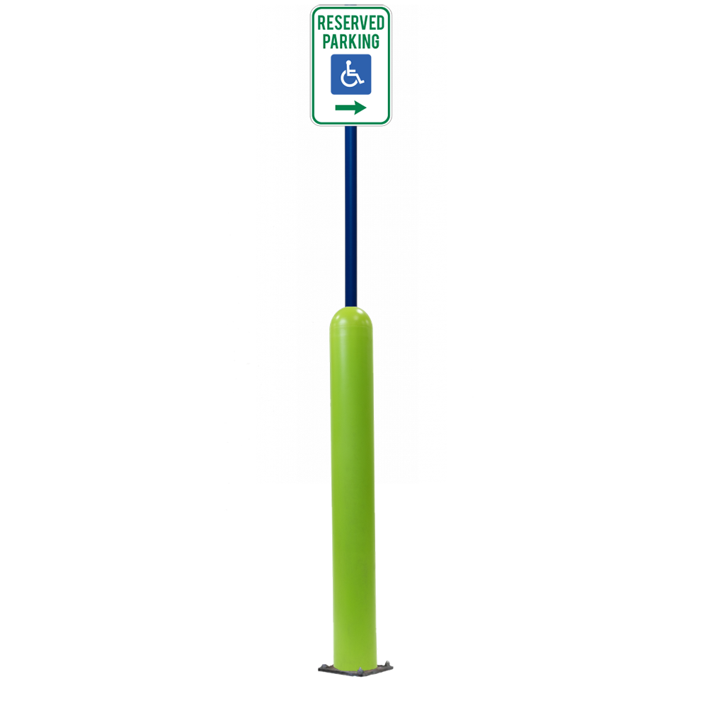 Have an exact size or installation need? Our Bollard Sign Systems are available in 4", 6", 8" diameter options, as well as either Base Plate or Core-In installation application. We also have a new Bounce Back system. Ask for more details!
