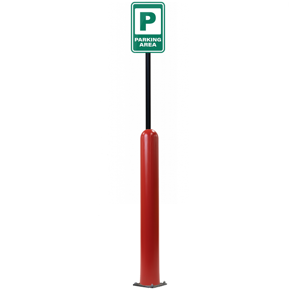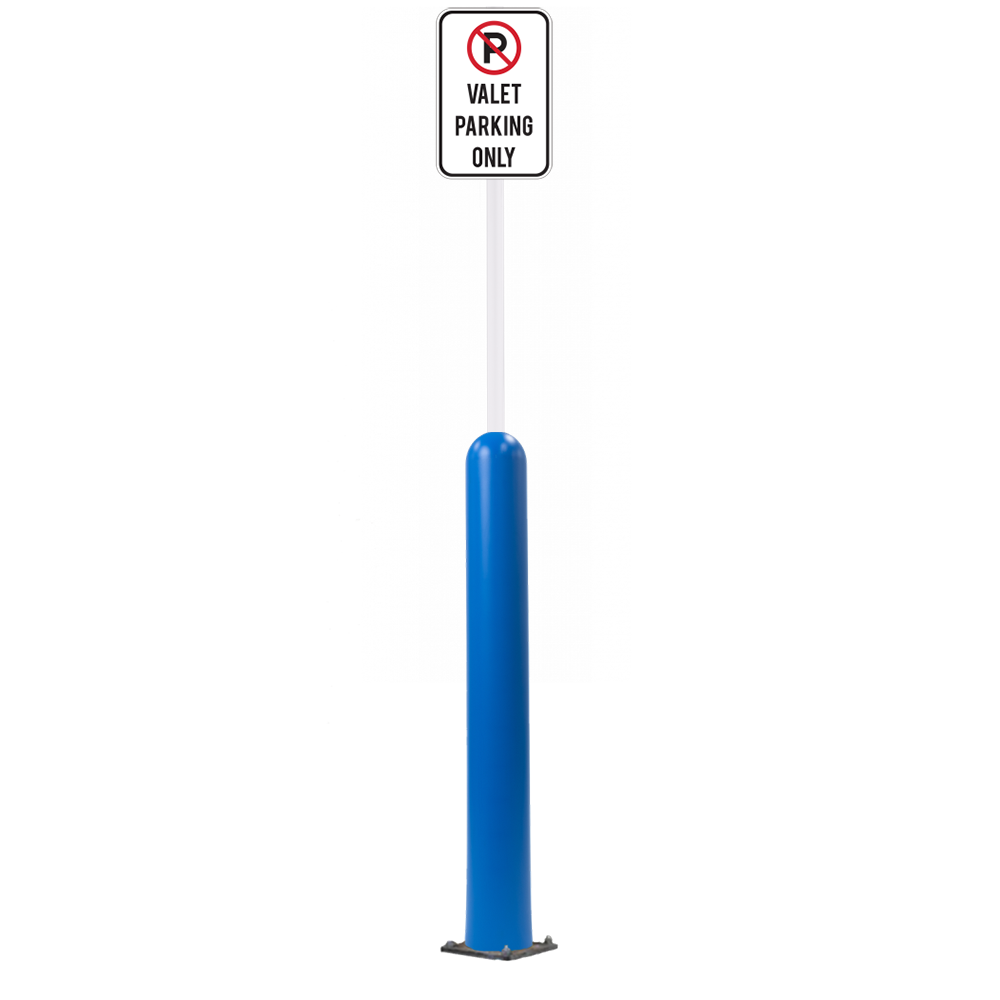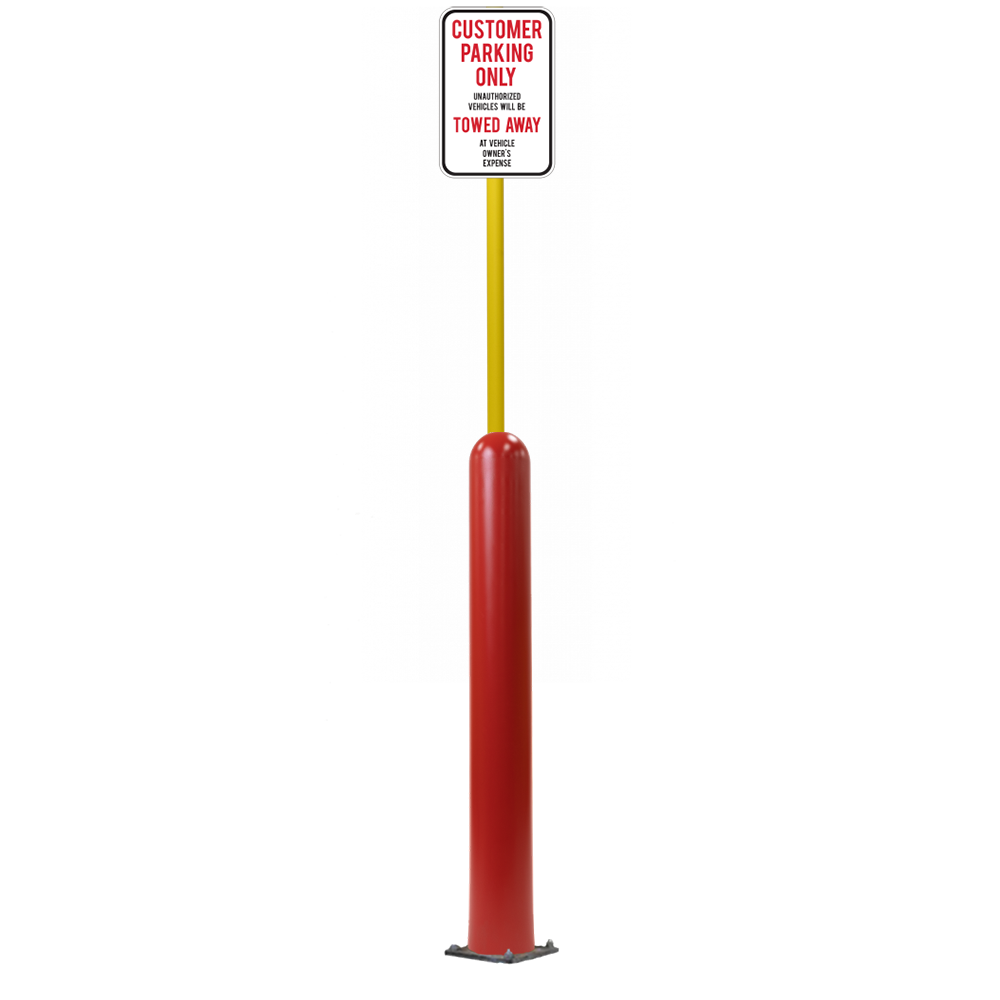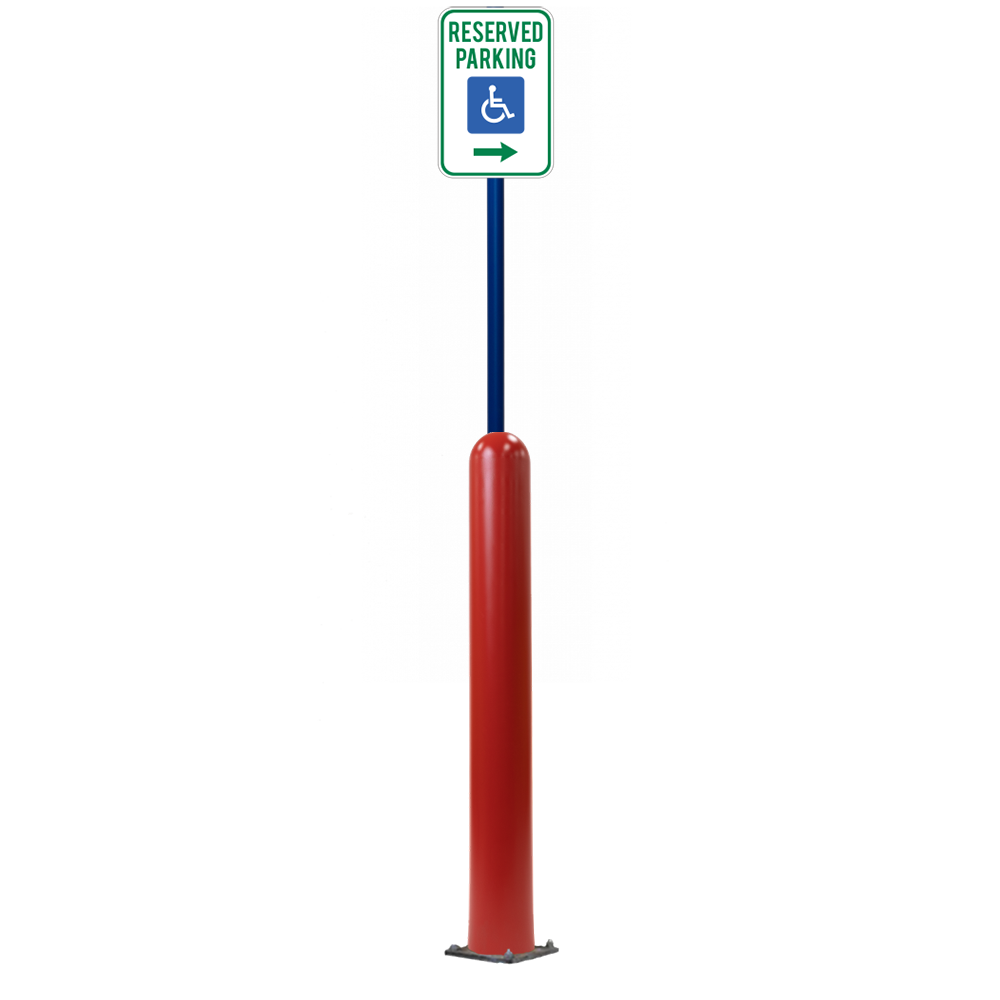 Our Bollard Sign Systems are steel pipe bollard sign post systems that are sleeved in a Bollard Cover and fabricated to include a steel signpost. The full sign system is a great alternative to regular steel parking lot signs which require constant paint jobs and repairs.