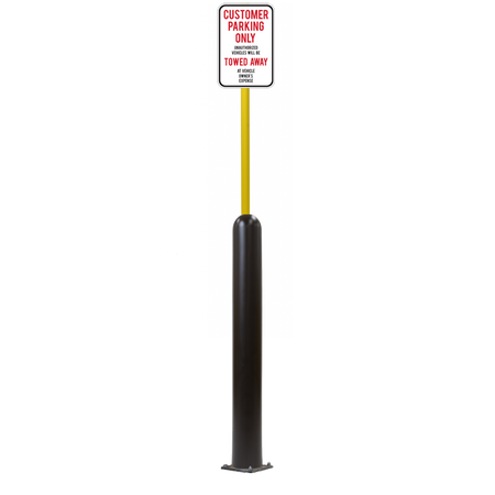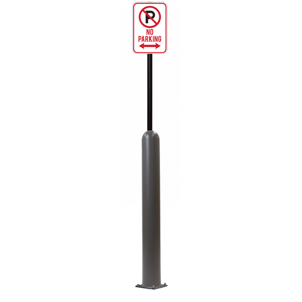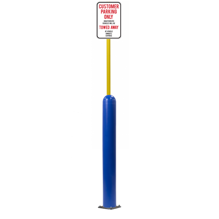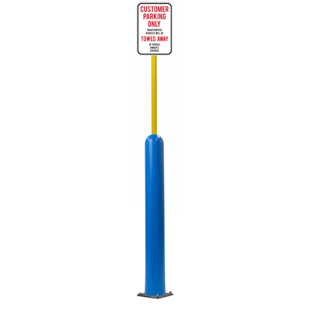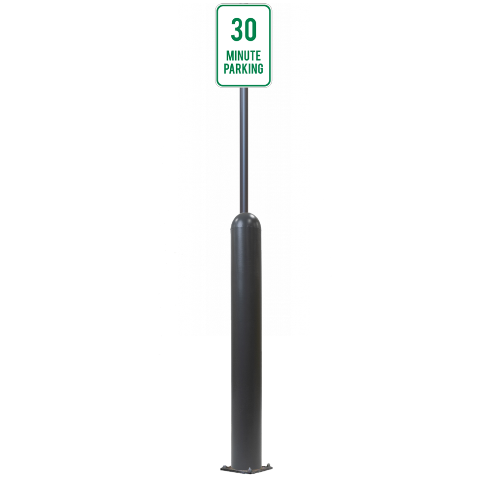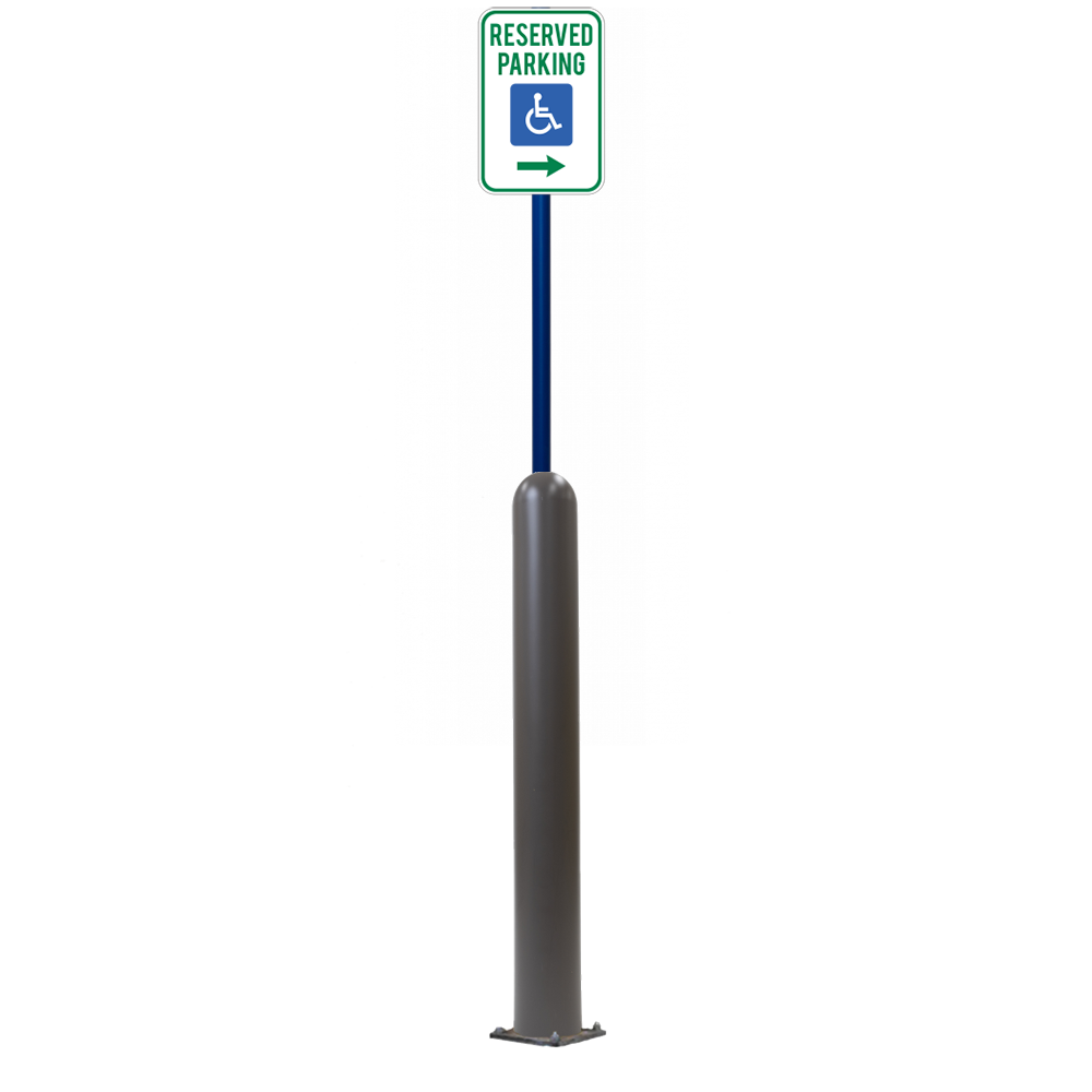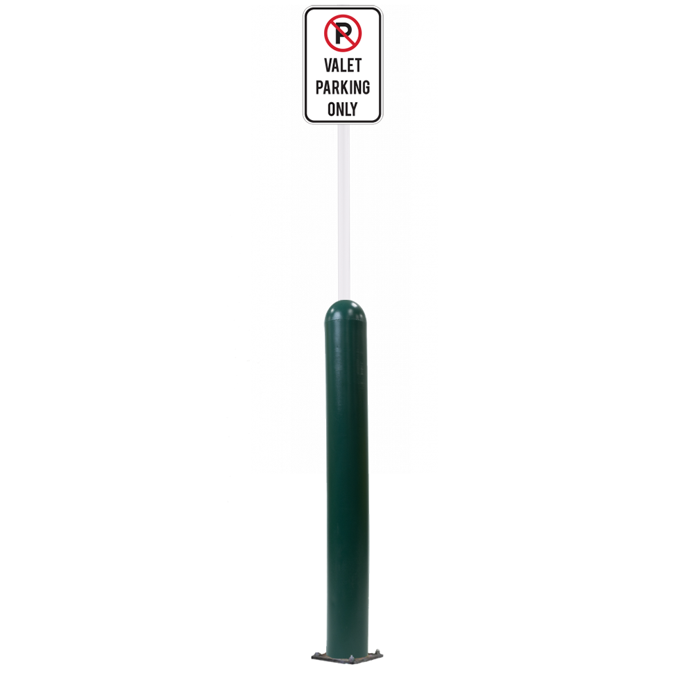 Bollard Sign Systems are steel pipe bollard sign post systems that are sleeved in a Bollard Cover and fabricated to include a steel signpost. The full sign system is a great alternative to regular steel parking lot signs which require constant paint jobs and repairs.