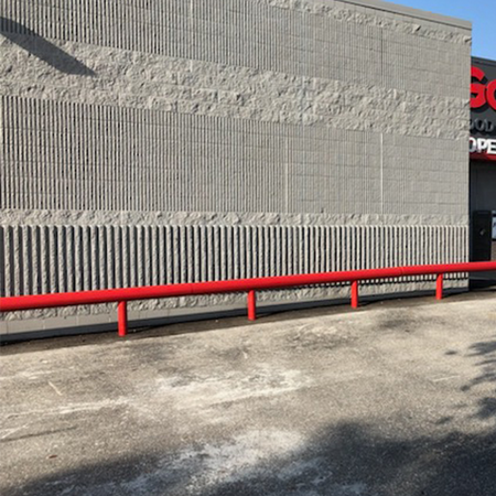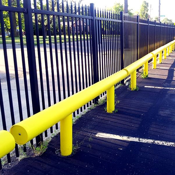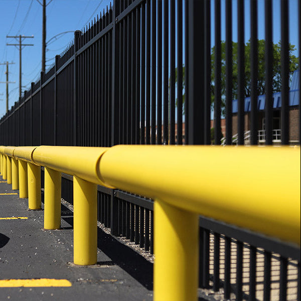 Available in multiple lengths and heights, steel guardrail is sleeved in a durable HDPE plastic and available in both one line and two line options. Thanks to the plastic sleeves, the safety guardrails require virtually no maintenance or painting. This feature means you will be able to save money on both possible accidents and maintenance fees throughout the life of the product.