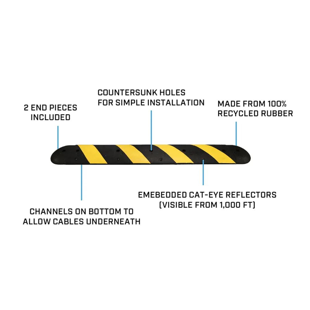 To give drivers a clear heads up, the Speed Bumps feature embedded cat-eye reflectors which are visible from 1,000 feet away. Reflective tape is also added to the Speed Bump to keep drivers aware of the upcoming bump in the road.