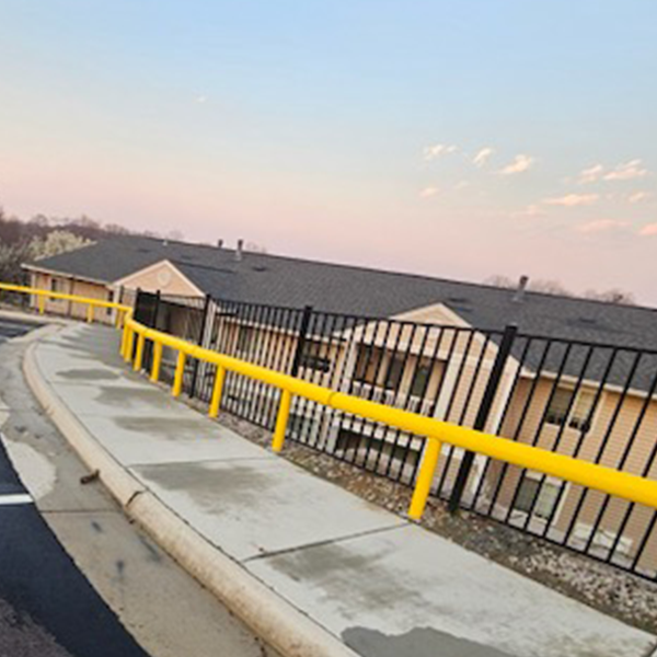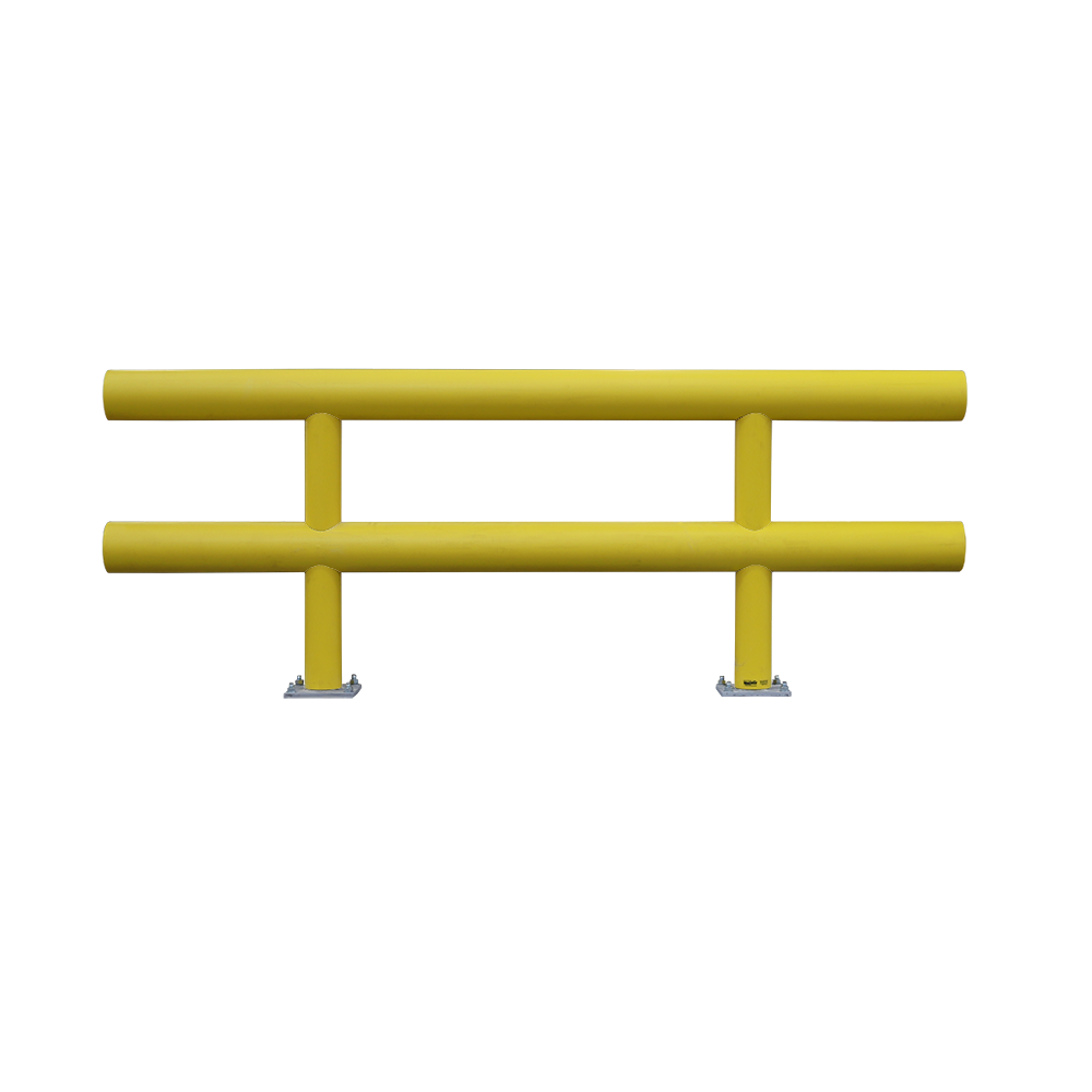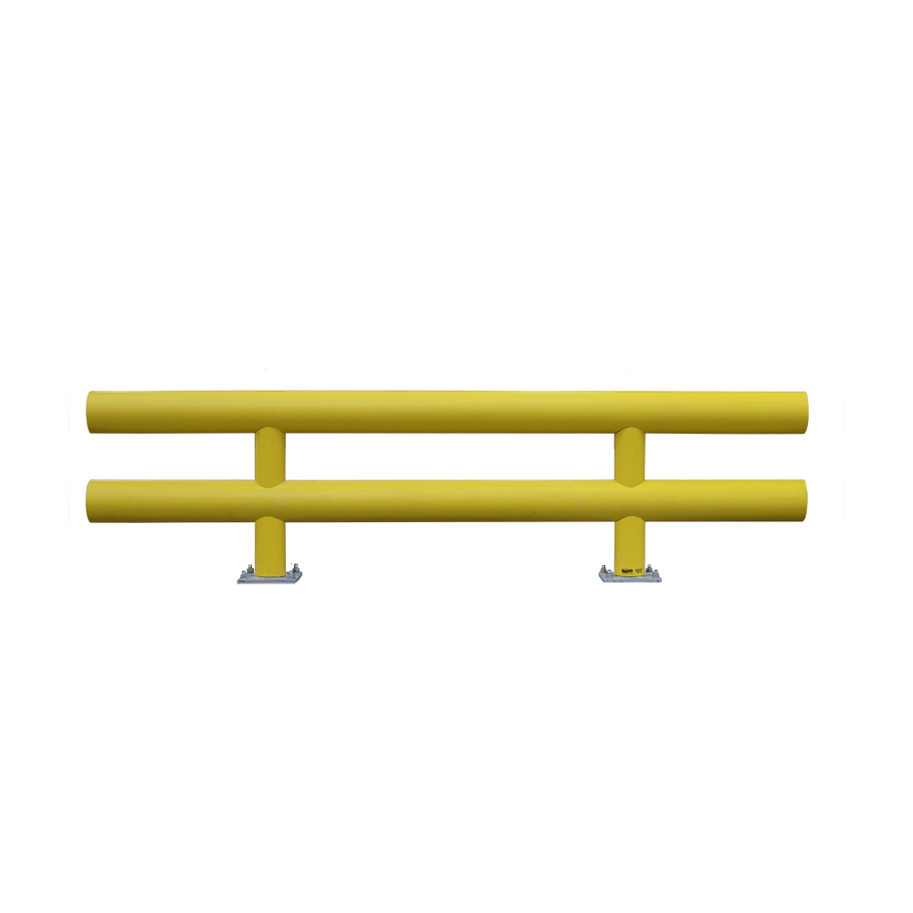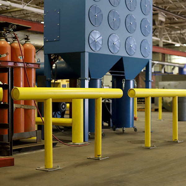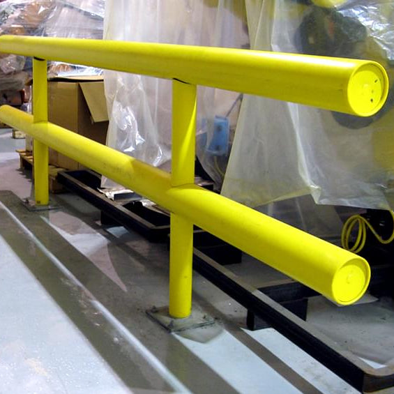 Our Standard Guardrail Systems are built with 4" schedule 40 steel pipe rails & 2 1/2" schedule 80 steel pipe posts. The systems are available in both one or two-line rails and are sleeved in a durable HDPE plastic, which will eliminate the need for painting and maintenance. This means that you'll be saving money on time and labor whenever accidents happen in your facilities.